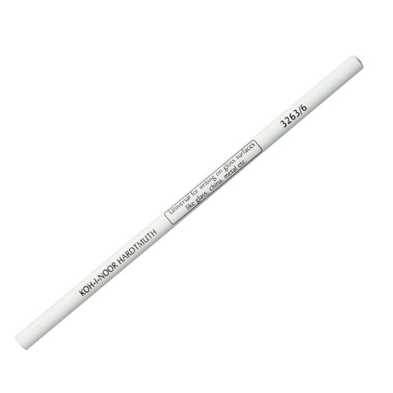 Špeciálna okrúhla , nehrotená, značená ceruzka na sklo, kov, a iné materiály ( celofán, porcelán, plast ), dĺžka ceruzy 175 mm, priemer ceruzy 7,5 mm, priemer tuhy 4,5 mm za sucha stierateľná Balenie: 6ks Značka: KOH-I-NOOR.
