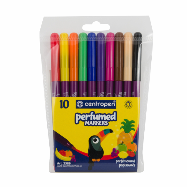 Parfumované značkovače Centropen ERGO držanie zdraviu neškodlivý atrament s vôňou ovocia ventilačný vrchnák valcový hrot šírka stopy 2-3 mm 10 farieb