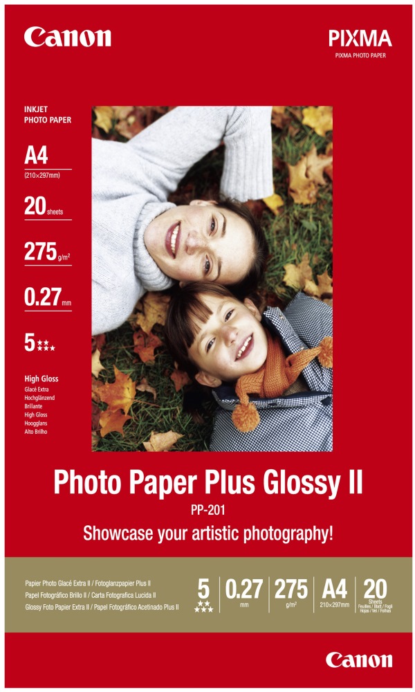 Canon Plus Glossy II PP-201 A4Lesklý fotografický papír Photo Paper Plus Glossy II od společnosti Canon je ideálním fotografickým papírem pro mimořádně kvalitní výstup s lesklým povrchem. Zajišťuje perfektní povrch digitálních fotografií a všech dotisků.