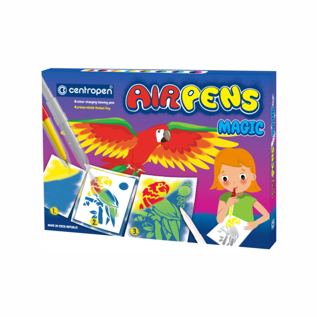 Magické fúkacie fixky na papier Centropen zdraviu neškodlivý atrament atramenty prefarbiteľné zmizíkom 8 farebných odtieňov 2 fúkací a 1 klasický zmizík 4+2 šablóny 10 hárkov A4