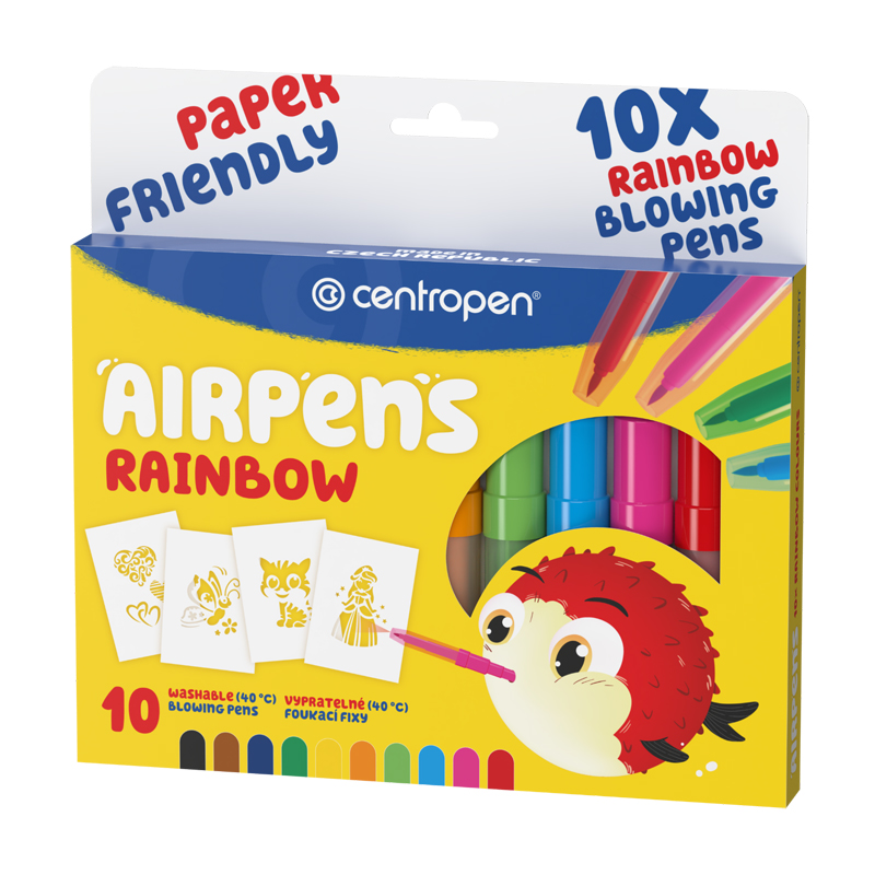 Fúkacie fixky na papier Centropen zdraviu neškodlivý atrament ľahko umývateľné a vyprateľné 10 farebných odtieňov 4 šablóny
