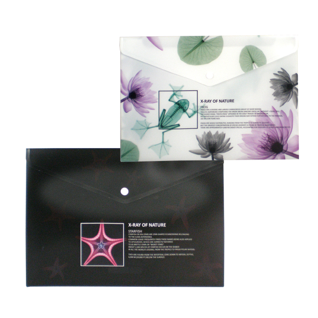 Obálka na dokumenty A4 KARTUS, gombíkové zapínanie, materiál: nepriehľadný PP, 180 mik., vzor X-Ray. Balenie: 12 ks/mix 2 farby. Cena za 1 ks.
