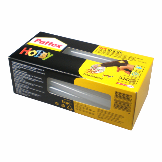 Lepiace tyčinky do lepiacej pištole Pattex Henkel. Hmotnosť 1 kg. 50 ks v balení. Cena za 1 balenie.