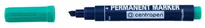 Permanentný značkovač Centropen na väčšinu povrchov nevysychavý (vydrží aj 14 dní bez vrchnáka) odolá vode, oteru, poveternostným vplyvom alkoholová báza klinový hrot šírka stopy 2-5 mm farba: zelená