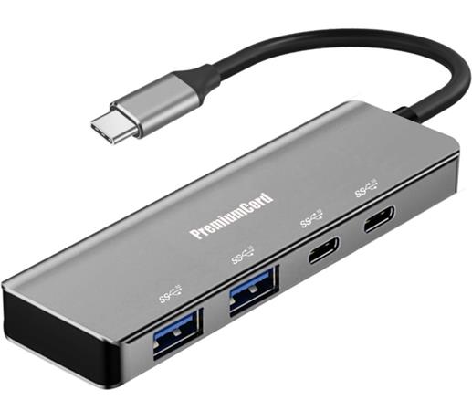 PremiumCord 5G SuperSpeed Hub USB-C na 2x USB 3.2 C +2x USB 3.2 A, Aluminum
