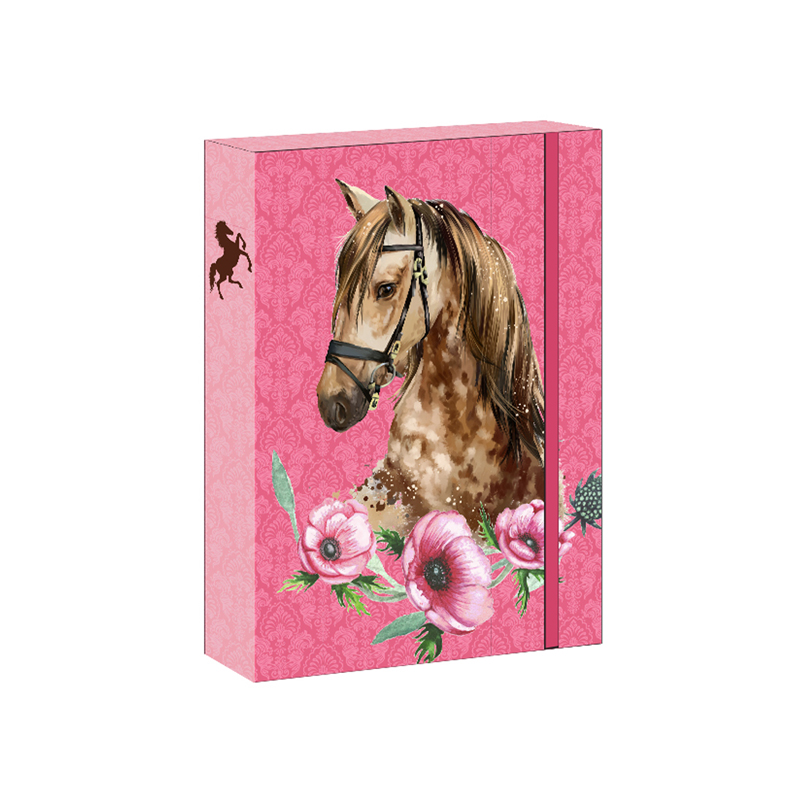 Školský box na zošity, formát A5,s motívom , zatváranie zaistené gumičkou,materiál tvrdý karton.Rozmer: 16x22x3 cm