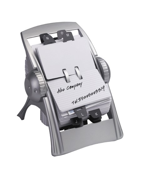 Otočný vizitkár ICO na vizitky. Abecedný rozraďovač umožňuje uloženie vizitiek podľa abecedy od A po Z. Akciové balenie obsahuje aj 5 balení náhradných plastových listov.
