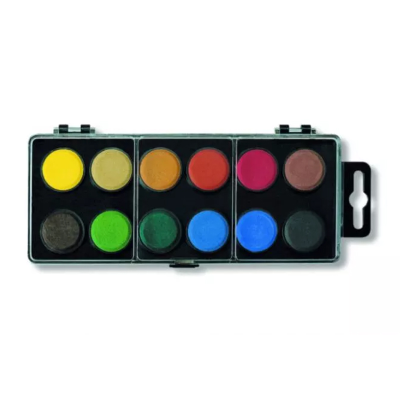 Vodové farby KOH-I-NOOR, počet farieb 12 ks, priemer farieb 22,5 mm. Balenie: 10 ks. Sú určené na maľovanie na papier a iné savé materiály, riediteľné vodou tableta . priemer 22,3, výška 4,5mm Značka: KOH-I-NOOR.
